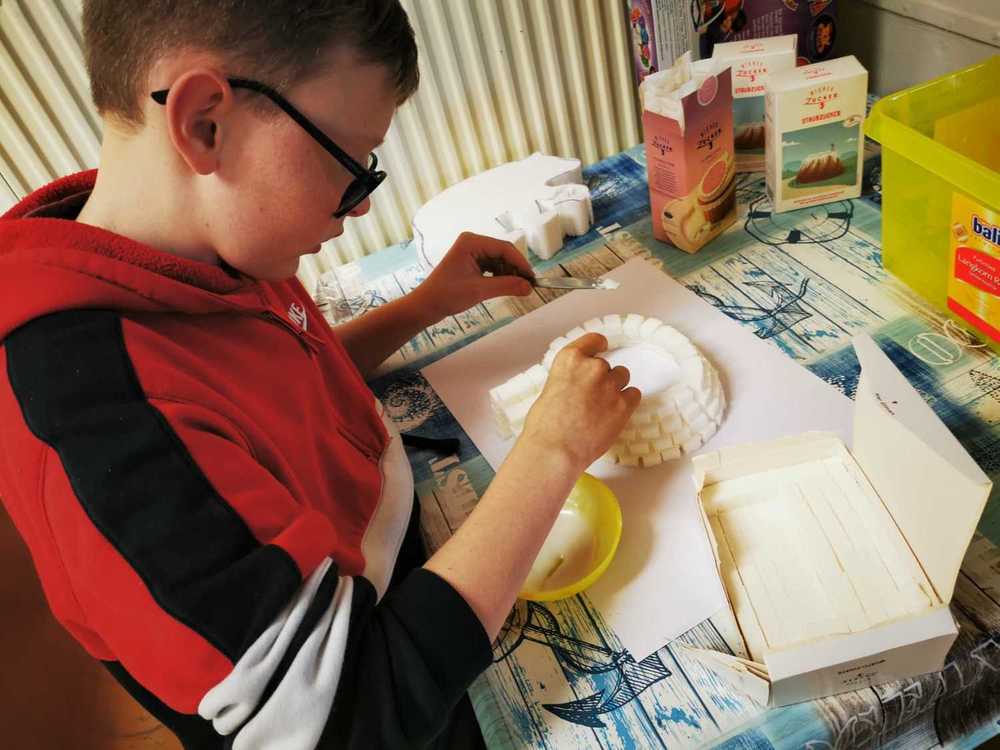 Kinder lieben zu gestalten und mit unterschiedlichen Materialien ihre Kreativität auszuleben. Sie stellen ihre Sicht der Wirklichkeit zur Welt, Gefühle und Erlebnisse dar. Jeder künstlerische Ausdruck ist ein Stück Selbsterfahrung und Persönlichkeitsentwicklung.¹ Eine Vielzahl an Bastelmaterialien, Farben, Werkstoffe wie Holz,Darstellungsmöglichkeiten und Bücher stehen ihnen zur Verfügung. Kinder können Geräte zerlegen und wieder zusammenbauen, außerdem „verschönern“ wir unseren Hort gemeinsam. Immer wieder gibt es kleine Projekte, in denen interessierte Kinder mit Schleifmaschine, Pinsel und Lack arbeiten. Die Kinder entscheiden, ob sie eigene Ideen umsetzen oder sich lieber an unseren Angeboten orientieren. Wichtig ist uns dabei nicht bewertend vorzugehen.