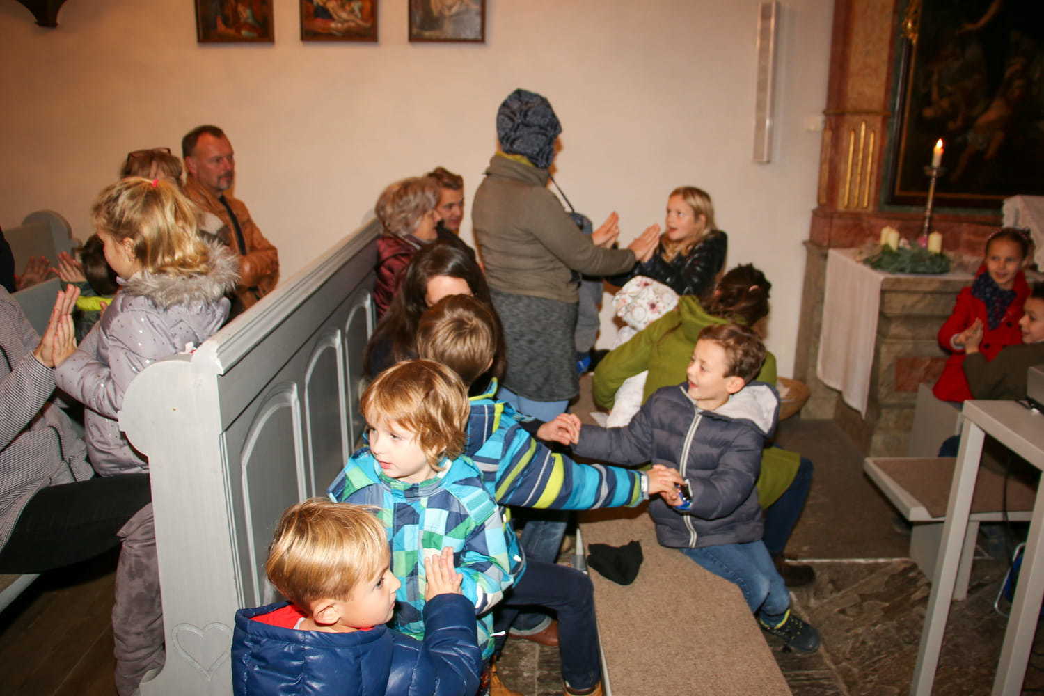 Am Beispiel des Schusters Martin hörten die Kinder, was es heißt: „In jedem Menschen Jesus sehn und nicht an ihm vorübergehn!“ Der Adventkranz und die verschiedenen Adventkalender (Jungschar, Sternenkalender und einer für die Eltern) können uns helfen und erinnern, Lichtbringer für die Menschen zu sein.